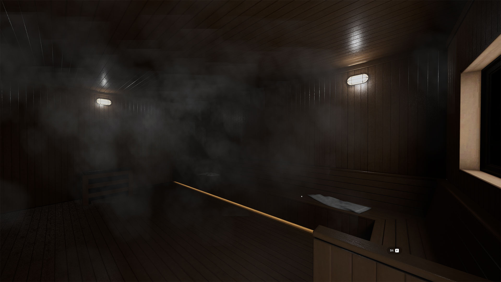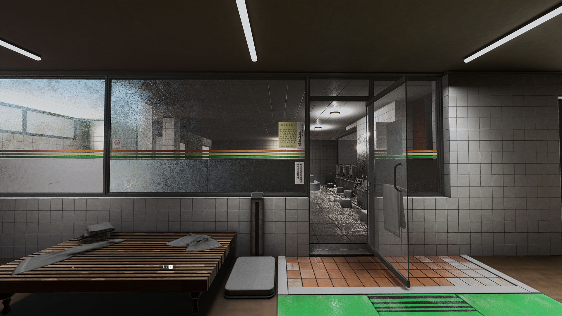 가상 공간은 크게 목욕탕 공간과 사우나 공간으로 구성된다. 목욕탕 공간은 전시 뿐만 아니라 쇼케이스 기간 중 개최되는 국제 라운드테이블의 메타버스 현장으로도 활용된다. 국내외 큐레이터와 작가, 그리고 관람객이 아바타로 참여하여, 각자의 시공간을 넘어 실시간으로 토론과 교류를 이어간다. 이 공간은 실제 수미 사우나의 구조와 분위기를 재현해, 관람객이 익숙한 일상적 장소 속에서 새로운 인식의 전환을 경험하도록 설계되었다. 벽면의 거울은 ‘이동의 포털’로 작동하여 관람객을 전시 감상 공간인 사우나로 안내한다.